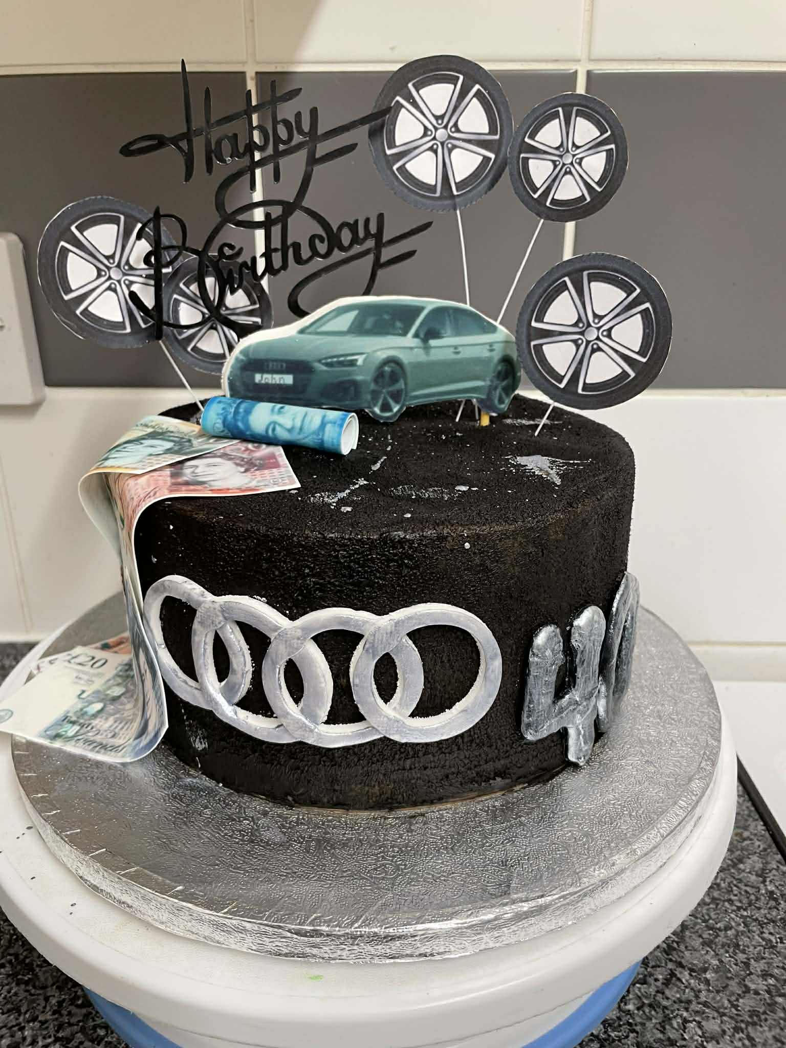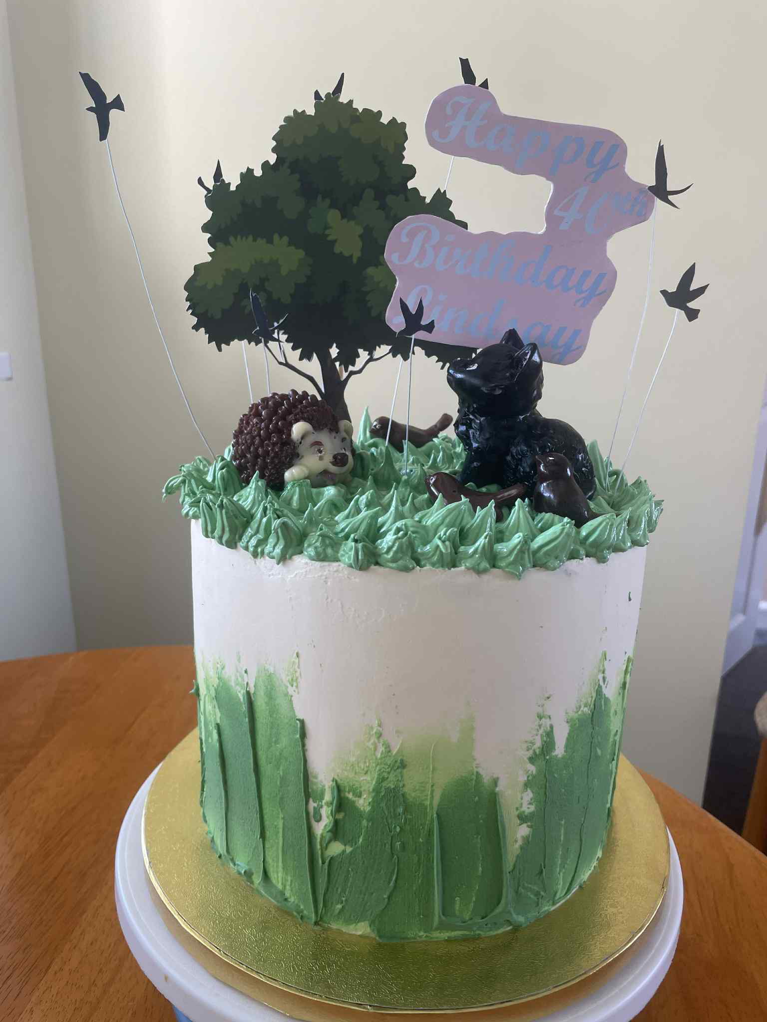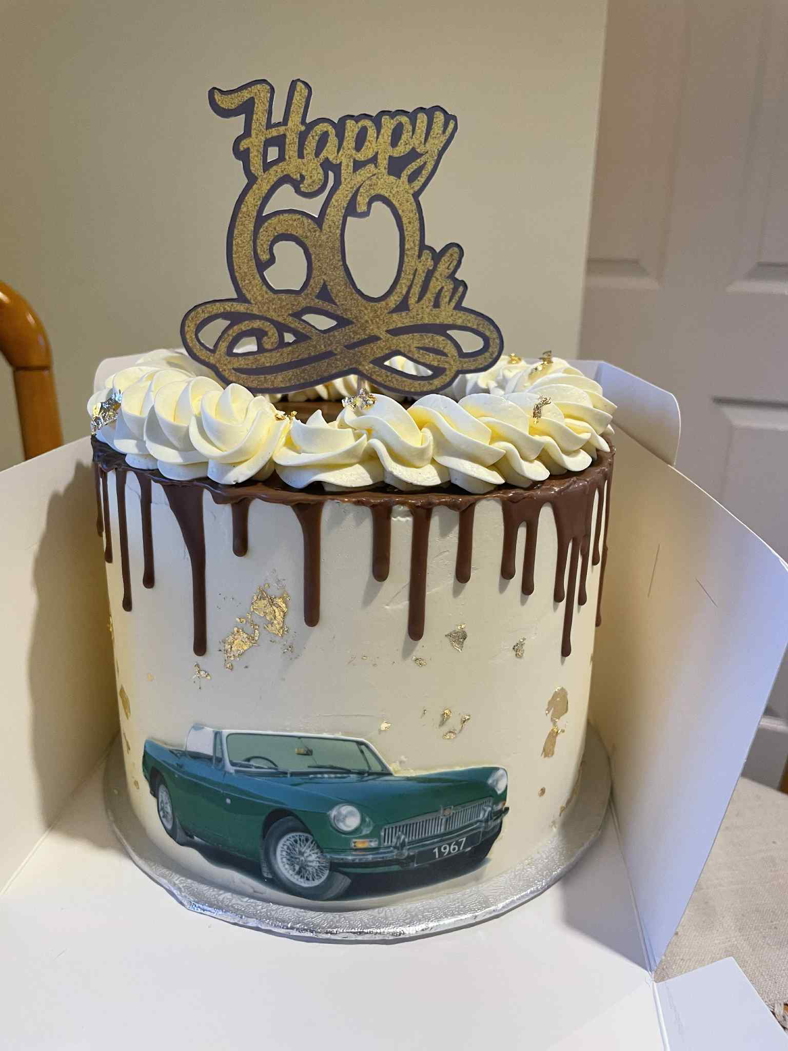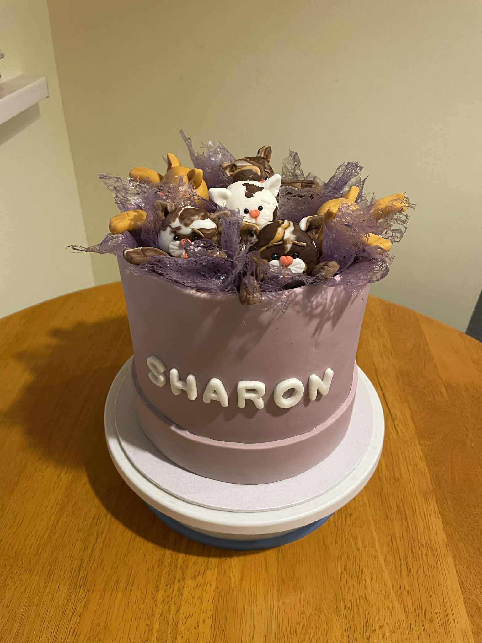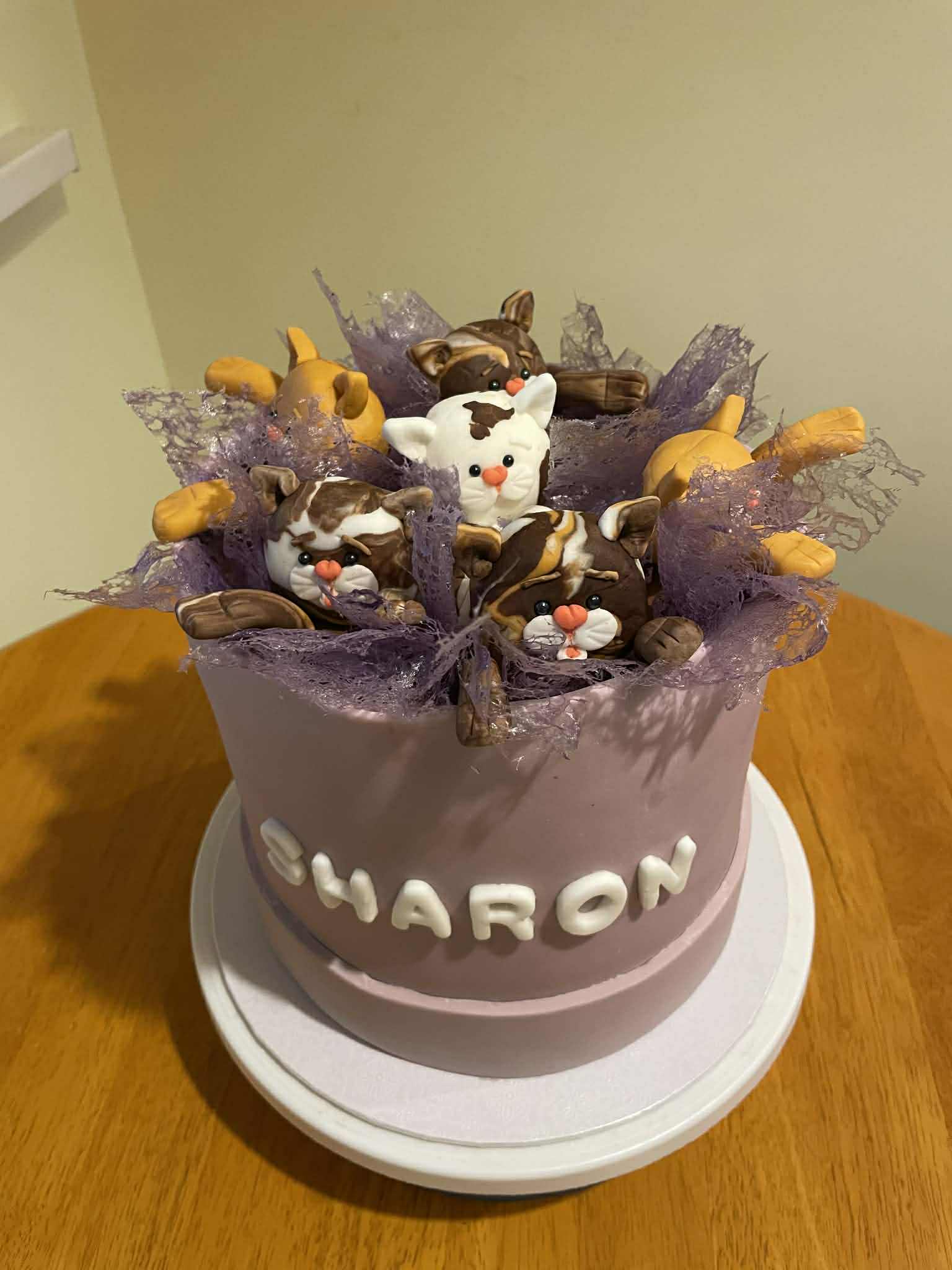 "Karyna made the cake for my partner’s birthday lunch. It was magnificent. She even managed to get little icings of our six cats (correct colours!!) and the colour and design was beautiful. The restaurant said it was the best they had seen and took Karyna’s details, as did other diners. It was delicious!! Four tiers of chocolate cake with salted caramel filling, not a bit was wasted. Definitely the best I’ve seen. Karyna was most helpful and excellent to deal with, arranging collection to suit us. Reasonable price and great value. Cake for 25 cost £75 worth every penny."